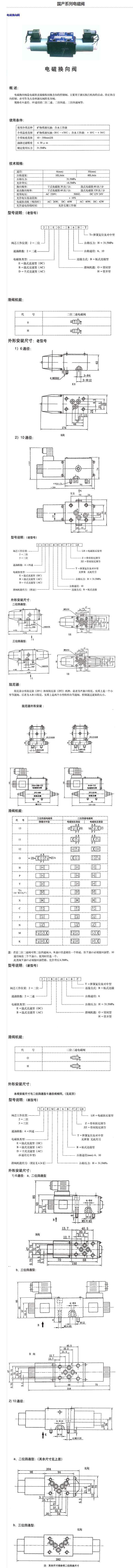 國產(chǎn)系列電磁換向閥部分型號: 24EI1-H6B-T、24EI1-H6B-TZ、24EI2-H6B-T、24EI2-H6B-TZ、24EI3-H6B-T、24EI3-H6B-TZ、24ED-H6B-T、24ED-H6B-TZ、24EH-H6B-T、24EH-H6B-TZ、24EP-H6B-T、24EP-H6B-TZ、24EY-H6B-T、24EY-H6B-TZ、24EYX-H6B-T、24EYX-H6B-TZ、24EX-H6B-T、24EX-H6B-TZ、24EC-H6B-T、24EC-H6B-TZ、24EJ-H6B-T、24EJ-H6B-TZ、24EN-H6B-T、24EN-H6B-TZ、24EM-H6B-T、24EM-H6B-TZ、24EK-H6B-T、24EK-H6B-TZ、34EY-B10H-T、34EX-B10H-T、34EC-B10H-T、34BY-B10H-T、34BX-B10H-T、34BC-B10H-T、34DY-B10H-T、34DX-B10H-T、34DC-B10H-T、34BK-H6B-T、34BZ-H6B-T、 34B0-H6B-T、34EK-H6B-T、34EZ-H6B-T、34E0-H6B-T、34DK-H6B-T、34DZ-H6B-T、34D0-H6B-T。