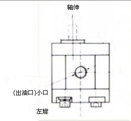 圖一 圖二 使泵軸豎直向上,小口即出油口對(duì)著自己,如果此時(shí)軸伸中心線偏向泵體中心線左側(cè)就是左旋泵否則為右旋泵