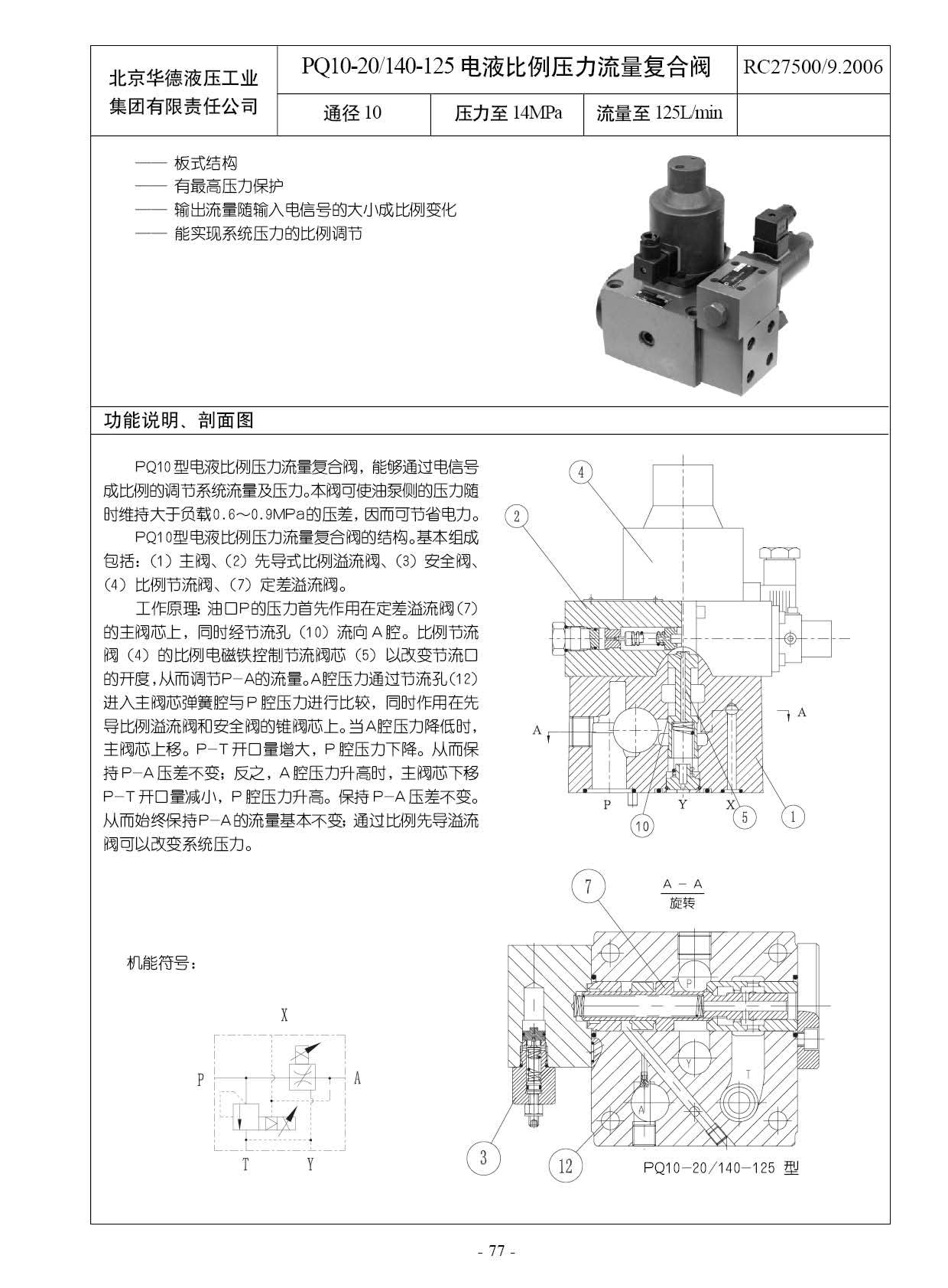 PQ10-20/140-125電液比例壓力流量復合閥能夠通過電信號成比例的調(diào)節(jié)系統(tǒng)流量及壓力。